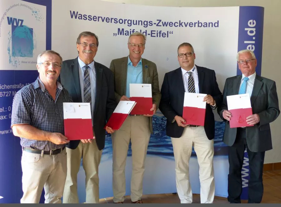 Der WVZ „Maifeld-Eifel“ investiert 2016 rund 2,1 Mio. Euro in verschiedene förderfähige Maßnahmen, die zum Erhalt der regionalen Trinkwasserversorgung und für die Sicherstellung im Hinblick auf Qualität und Quantität notwendig sind. Finanzielle Unterstützung gewährt das Ministerium für Umwelt, Energie, Ernährung und Forsten in Form von Fördermitteln. Herr Staatssekretär Dr. Thomas Griese besuchte den WVZ-Standort in Kruft und überreichte die Förderbescheide. So werden rund 800.000 Euro für Erneuerung, Umbau, Erweiterung und Verbesserung von verschiedenen Wasserversorgungsanlagen (Gewinnungs- und Druckerhöhungsanlagen sowie Hochbehälter) investiert, wovon rund 680.000 Mio. Euro vom Ministerium für Umwelt, Energie, Ernährung und Forsten gefördert werden. Derzeit wird u. a. das Wasserwerk in Kruft modernisiert und an den Stand der Technik angepasst, um nur eines dieser Projekte zu nennen.