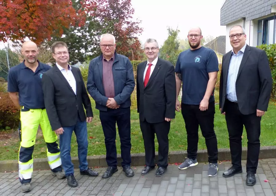 Von links nach rechts: Wassermeister Ralf Dahm, Werkleiter Jürgen Wagner, Manfred Görgen, Landrat und Verbandsvorsteher Dr. Alexander Saftig, Personalvertretung Henrik Höfker und Technischer Leiter Stefan Friedsam