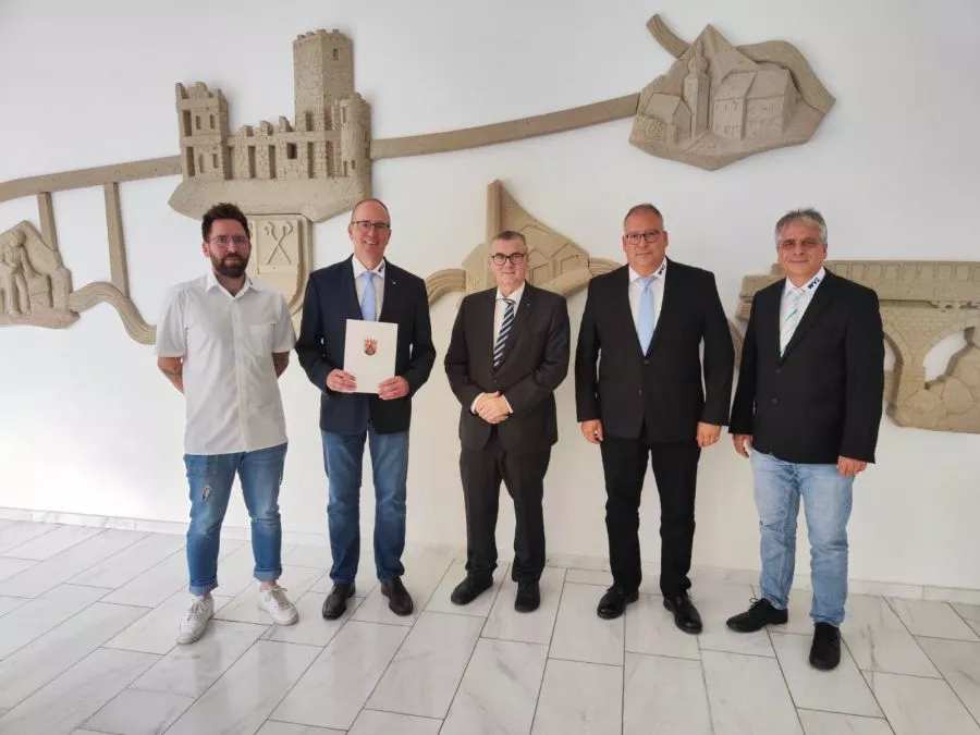 v.l.n.r. Personalratsvorsitzender Florian Brönner, Rainer Wollenweber, Verbandsvorsteher Landrat Dr. Alexander Saftig, Technischer Leiter Stefan Friedsam, Kaufmännischer Leiter Andreas Kroker